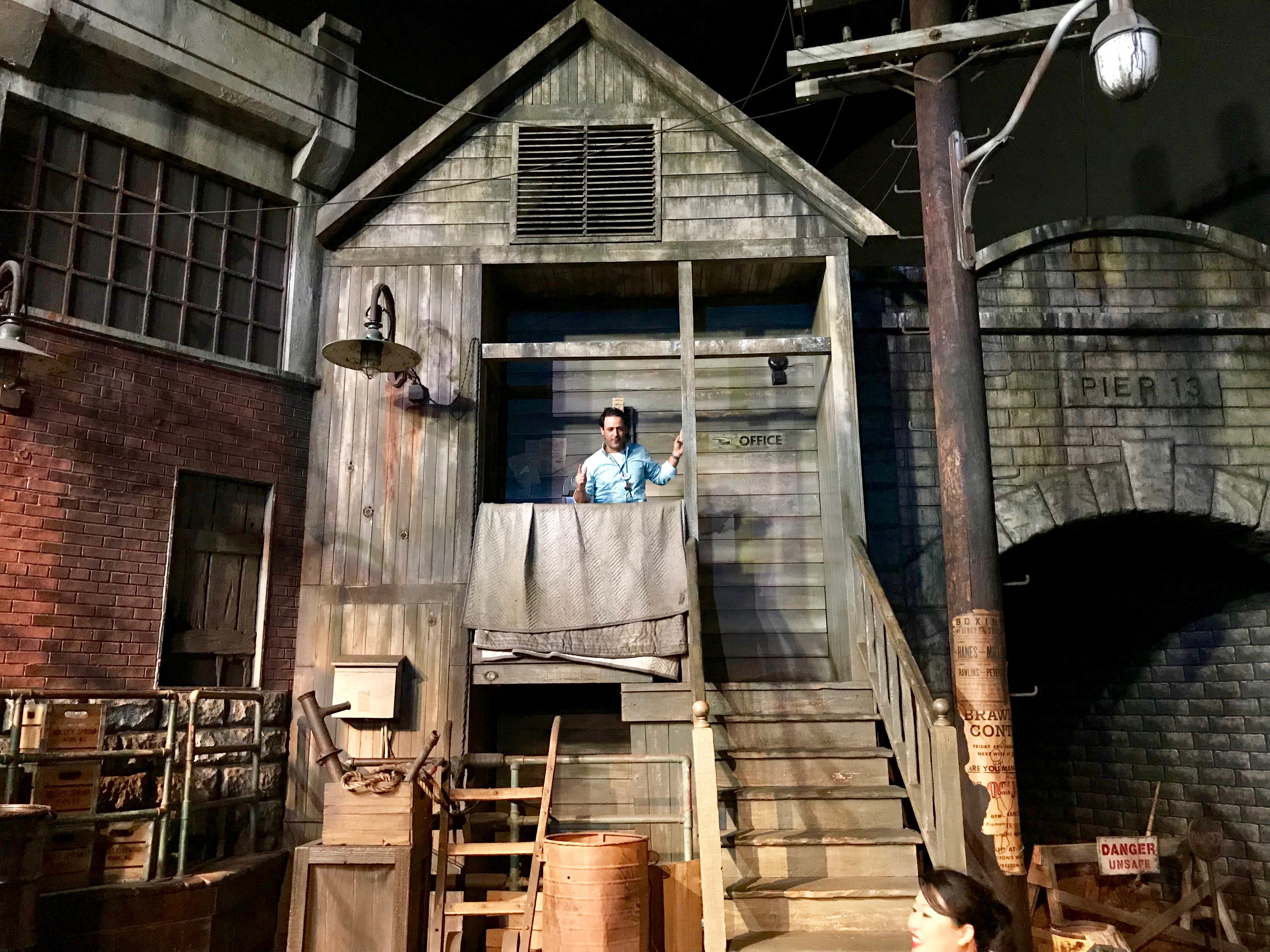 As we strolled from scene to scene with the actual work lights on, as opposed to the Parks Blog Meet-Up with show lighting on, Diego and Gary would give behind the scene stories like how the design of Gene Kelly's suit in the Singing in the Rain scene included "rain drops" on it to give the wet effect.
