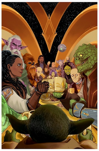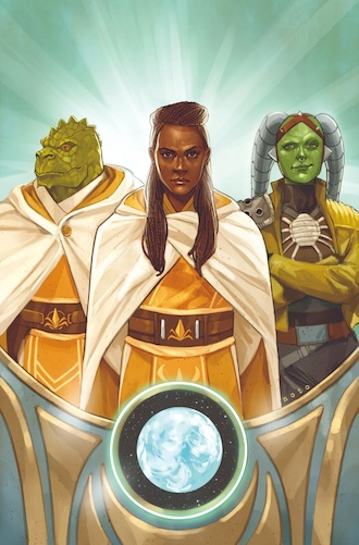 Another ongoing Marvel Comics title set in A Galaxy Far, Far Away is Star Wars: Jedi Knights by Marc Guggenheim. During the panel we got a first look at the main and variant covers for issue #8 (due out in October), all of which feature the character of Jedi Master Kelleran Beq, who was played on-screen by actor Ahmed Best in The Mandalorian.