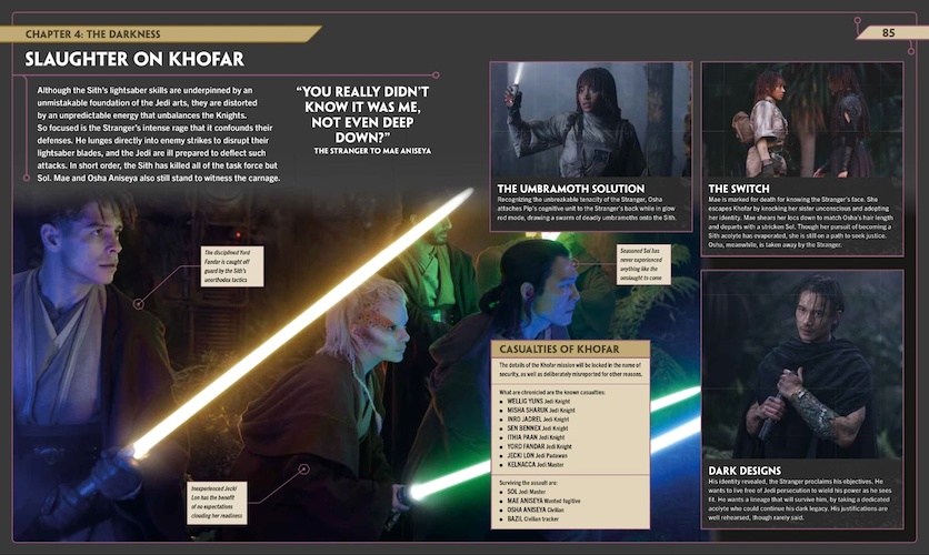 The Lucasfilm Publishing crew shared six different page spreads from Star Wars: The Acolyte Visual Guide.