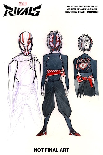 - As Marvel Rivals prepares to introduce new in-game cosmetics designed by Momoko, these costume sketches will be featured on variant covers of June issues of Amazing Spider-Man, Immortal Thor, Daredevil: Cold Day in Hell, Bring on the Bad Guys: Doom, and the all-new Spider-Girl.