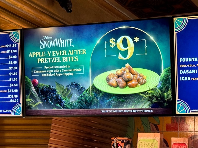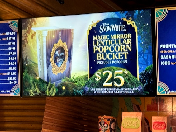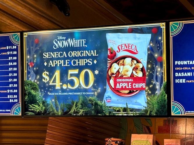 Inside the theater, the specialty options at the concession stand run the gamut from collectible popcorn buckets to specialty snacks and drinks (mostly apple-inspired, of course).