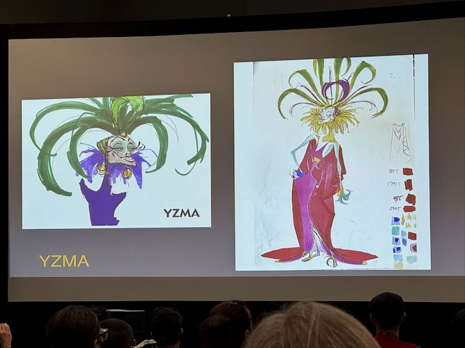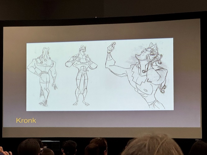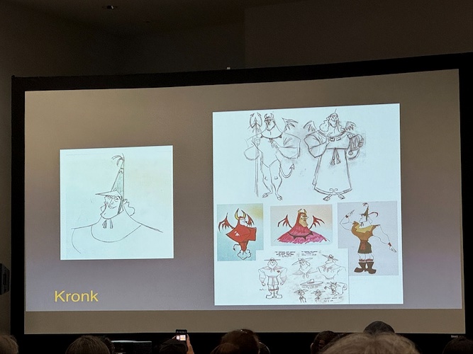 Next they showed concept drawings and a maquette of Yzma, along with concepts of Kronk. We learned that the character of Yzma was inspired by Peruvian singer Yma Sumac, while Disney originally wanted actor Brad Garrett to voice Kronk, though the creative team was insistent on Patrick Warburton being perfect for the role.