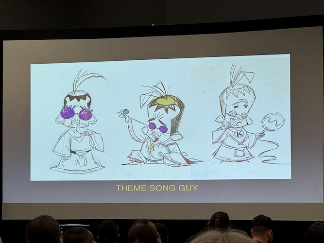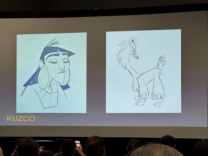 They started off the presentation by sharing early and later character design concept art sketches of Kuzco and Pacha.