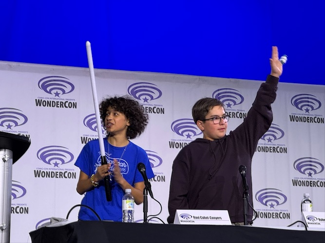 This past Saturday morning at WonderCon 2025 at the Anaheim Convention Center in Southern California, Star Wars: Skeleton Crew stars Ravi Cabot-Conyers (who played the character of Wim) and Robert Timothy Smith (Neel) participated in a panel discussion of their experience on the show. Below is my brief recap of the panel with some photos and a bit of video along with it.
