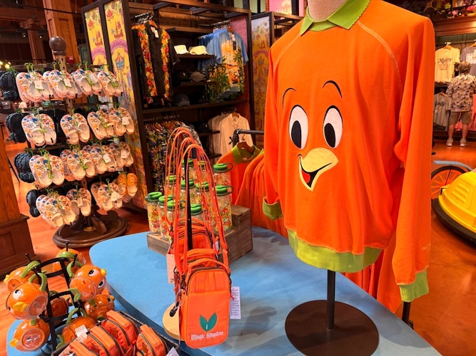 There’s been more and more Orange Bird merch in recent years, as the popularity of the character has expanded, but it’s safe to say this is one clothing item that will definitely stand out in a crowd. The bright orange Pullover for Women, with Orange Bird’s face on it, is available at multiple Walt Disney World locations, including Marketplace Co-Op at Disney Springs. The green trim, including the collar, evokes the leaves that can be found on Orange Bird.