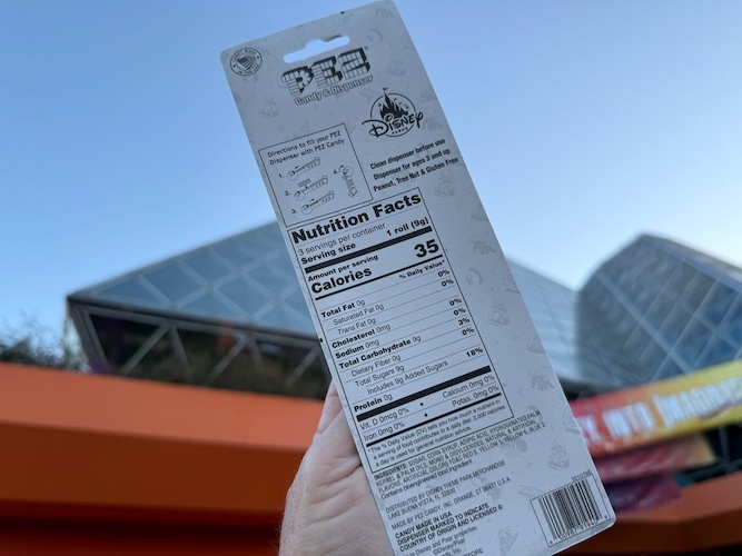 Spotted at the Image Works store at the exit to Journey into Imagination with Figment, this brand-new PEZ dispenser features Figment’s head atop a purple container marked with the Disney Parks logo.