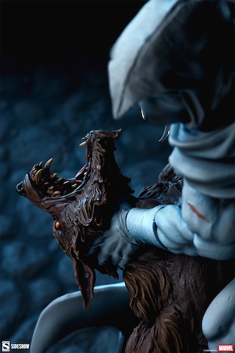 The latest high-end collectible figure from Marvel and Sideshow depicts Moon Knight battling with the ferocious Werewolf by Night.