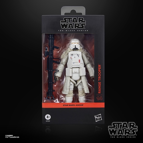 - A Range Trooper was prominently used in the Andor Season 2 premiere, attempting to stop Cassian Andor as he stole a TIE Avenger. This new Range Trooper comes with the rocket launcher wielded by the Trooper in that episode. This version of the Range Trooper does not wear the large magnetic boots seen in Solo.