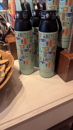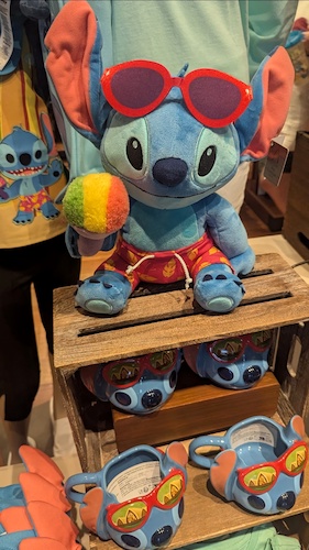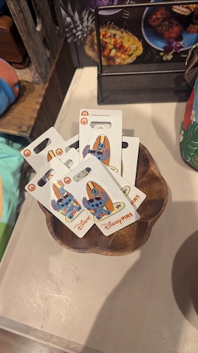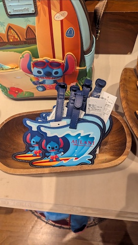 The design motif of a stylized Stitch in beach garb also carries over to a number of items and accessories, including a magnet, luggage tags, water bottles, pins, and more at the location.