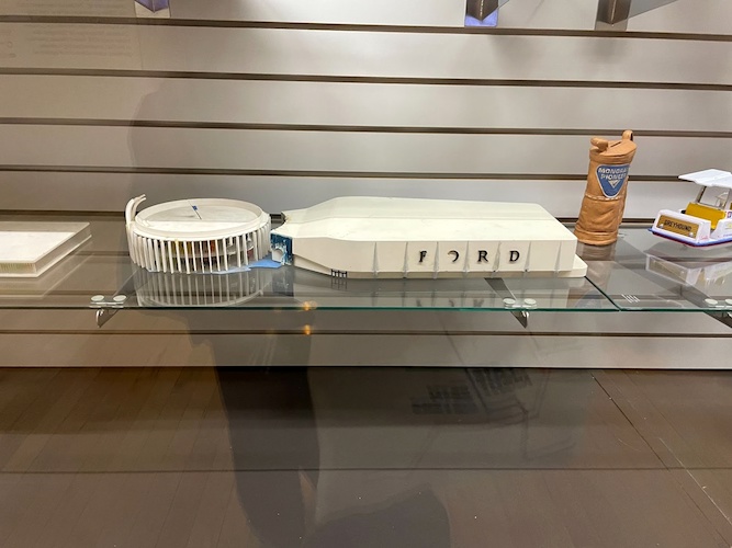 Elsewhere in the exhibit were historical photographs and maps, alongside a remarkable model of the fairgrounds during the celebration. (I made sure to look at other pavilions Disney worked on, including Pepsi (it’s a small world) and Illinois (Great Moments with Mr. Lincoln).