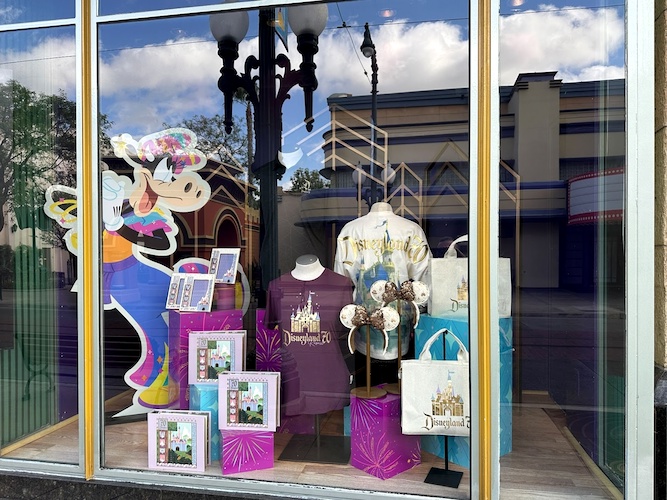Of course, you’ll find plenty of 70th anniversary merchandise inside the shops of Buena Vista Street, along with window displays.
