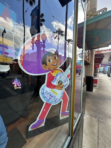 The shop windows of Gone Hollywood also feature some Disneyland 70th displays, featuring various characters – such as Clarabelle in her 70th costume – alongside some of the merchandise collections.