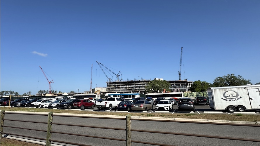 Guests using the resort bus transportation in the Settlement area will note a new loading zone in a different area, with designated signage and Cast Members there to assist. This is largely because the buses now load in a portion of parking lot adjacent to the Lakeshore Lodge construction site.