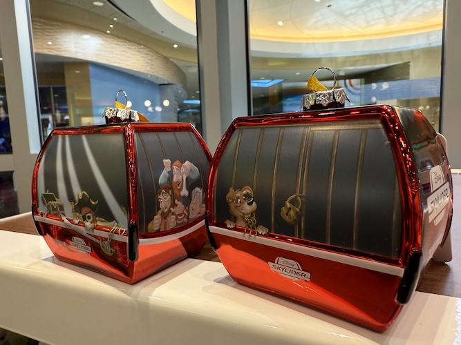 The aesthetic (sans handle) carries over to a number of Ornaments as well, featuring art as seen on the vehicles. Fans can remember their favorite gondola car through a variety of options, all at $29.99