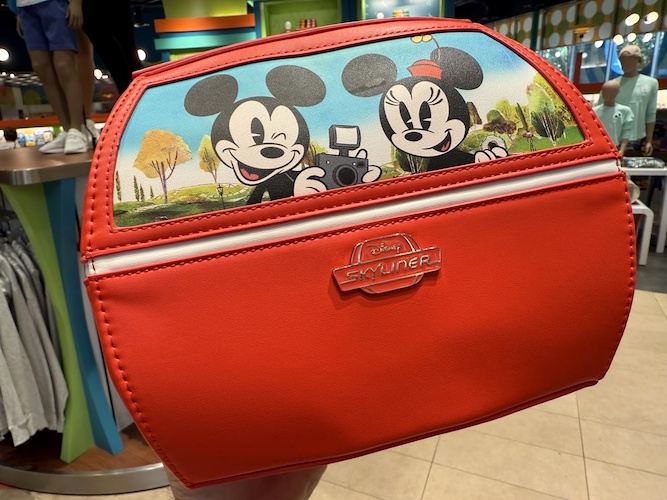 Loungefly bags are popping up across Walt Disney World and the rest of the Disney Parks, so why would the Disney Skyliner be left out?! This bag is shaped like a Skyliner vehicle, opening at the top and featuring art of various vehicles and colors aboard the line. Fans can pick this one up for $75.00.