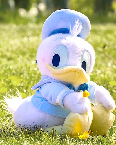 - The other plush looks like a baby Donald and features our pal in a sitting position. This plush features soft fur, and a pastel coloring and is so stinking cute!