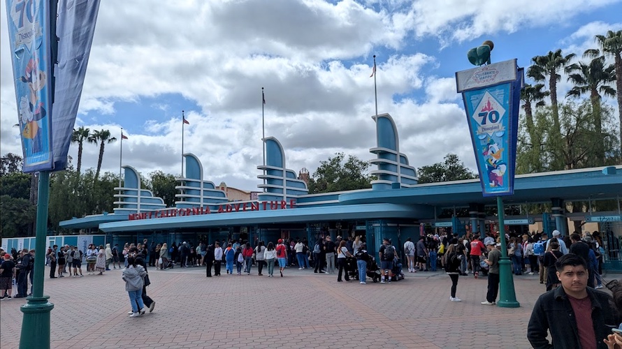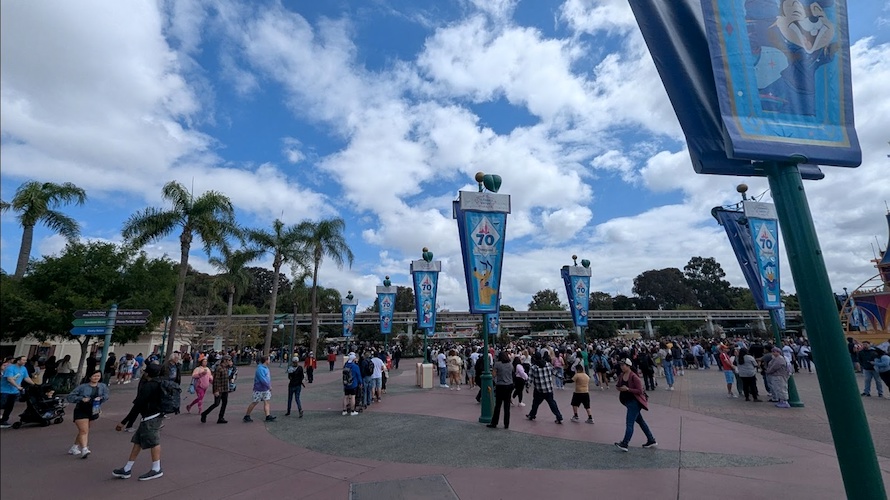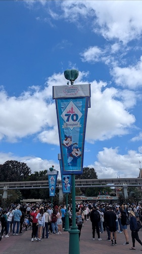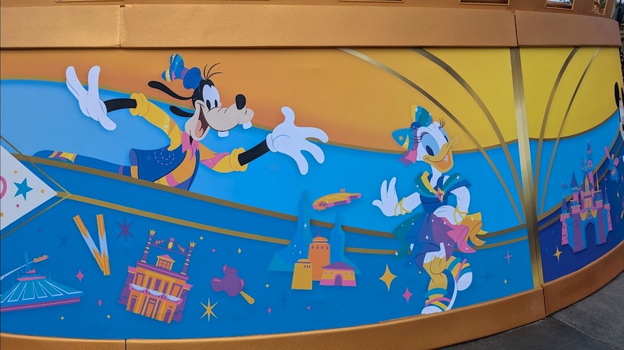 Throughout the Esplanade, banners which once featured attractions found at both Disneyland and Disney California Adventure, have been replaced with the anniversary logo and the characters in their anniversary attire. This is to be expected though, as nearly every celebration or season at the event features these banners changing in some way.