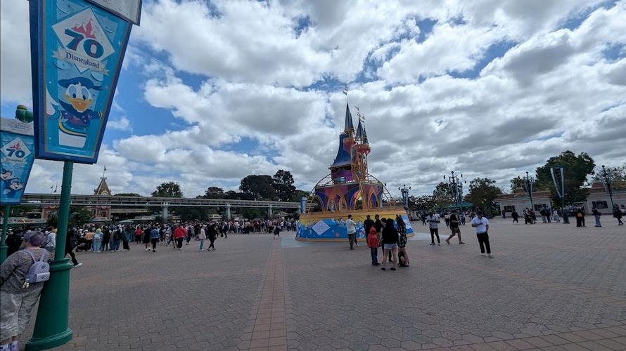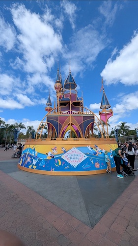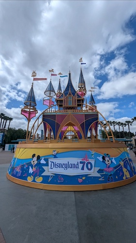 Guests entering the Esplanade of the Disneyland Resort will see a brand new sculpture in the space between Disneyland Park and Disney California Adventure. The sculpture, part of the Disneyland Resort 70th Anniversary Celebration, has an artistic interpretation of Sleeping Beauty Castle adorned with attraction icons and our favorite characters.