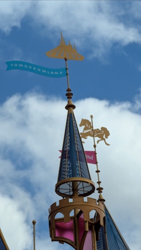 Another fun thing to note, each of the spires on the castle sculpture features a flag with a different opening day land, along with a cutout featuring something indicative of that land. For example, Fantasyland has a carousel horse, and Adventureland has a Jungle Cruise boat, etc. Some will also point out that three of the five symbols are opening day attractions as well - the carousel, Jungle Cruise, and the Mark Twain. However, Tomorrowland’s flag features Space Mountain (1977) and Main Street USA features the Partners statue, which arrived at Disneyland in 1993.