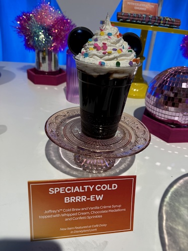 Specialty Cold Brrr-ew: Joffrey’s Cold Brew and vanilla crème syrup topped with whipped cream, chocolate medallions, and confetti sprinkles (Non-alcoholic)