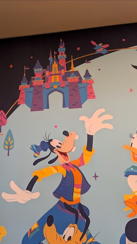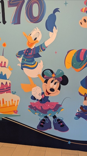 When stepping into the lobby, this mural celebrates the 70th anniversary of the Disneyland Hotel itself – yep, she’s also turning 70 on October 5th. You’ll find Disneyland icons such as Sleeping Beauty Castle, Black Spire Outpost, “It’s a small world" and The Haunted Mansion on the mural, alongside Mickey and friends in their 70th costumes.