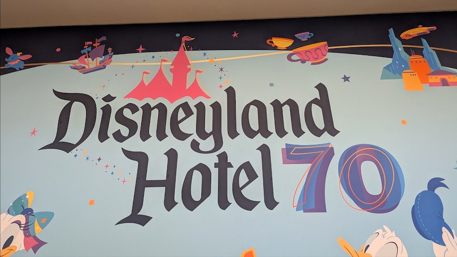 As soon as guests arrive for their stay at the Disneyland Hotel, they’ll immediately be greeted by some fun decor for the Disneyland Resort 70th Celebration.