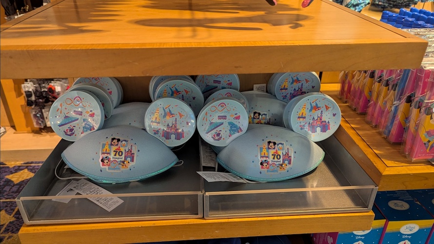 A selection of 70th anniversary merchandise is available at the Disneyland Hotel’s gift shop, the Fantasia Shop.