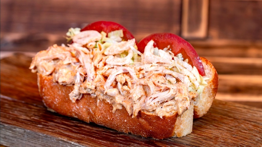 Cajun chicken salad tossed in Cajun rémoulade, tomatoes, lettuce and fried onions.
