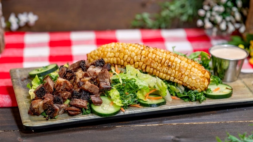 Chopped brisket, romaine and kale mixed greens, cucumber, carrots, corn rib, and chile-lime vinaigrette.