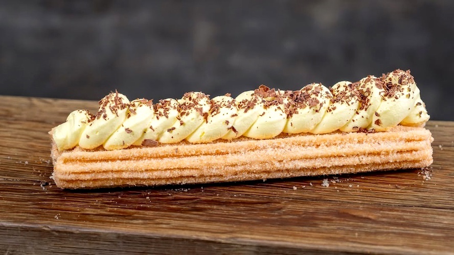 Classic churro rolled in vanilla-cocoa sugar and drizzled with espresso sauce.