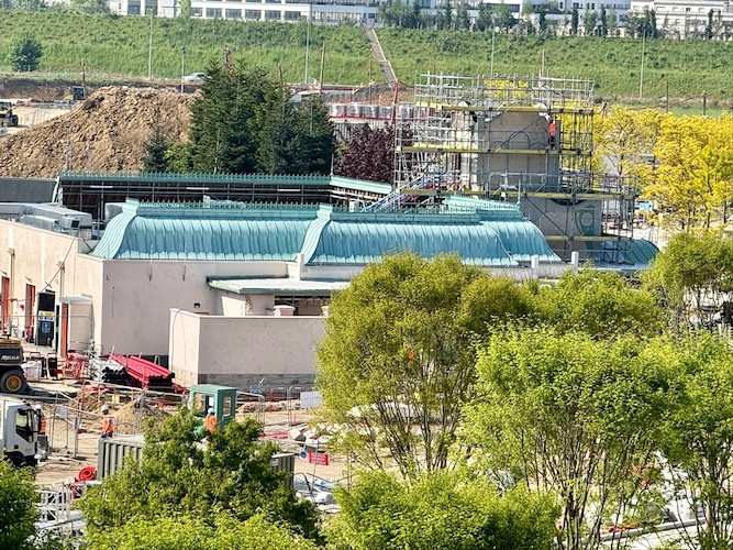- The upcoming attraction’s ornate roof is also coming together, getting finishing touches and details.