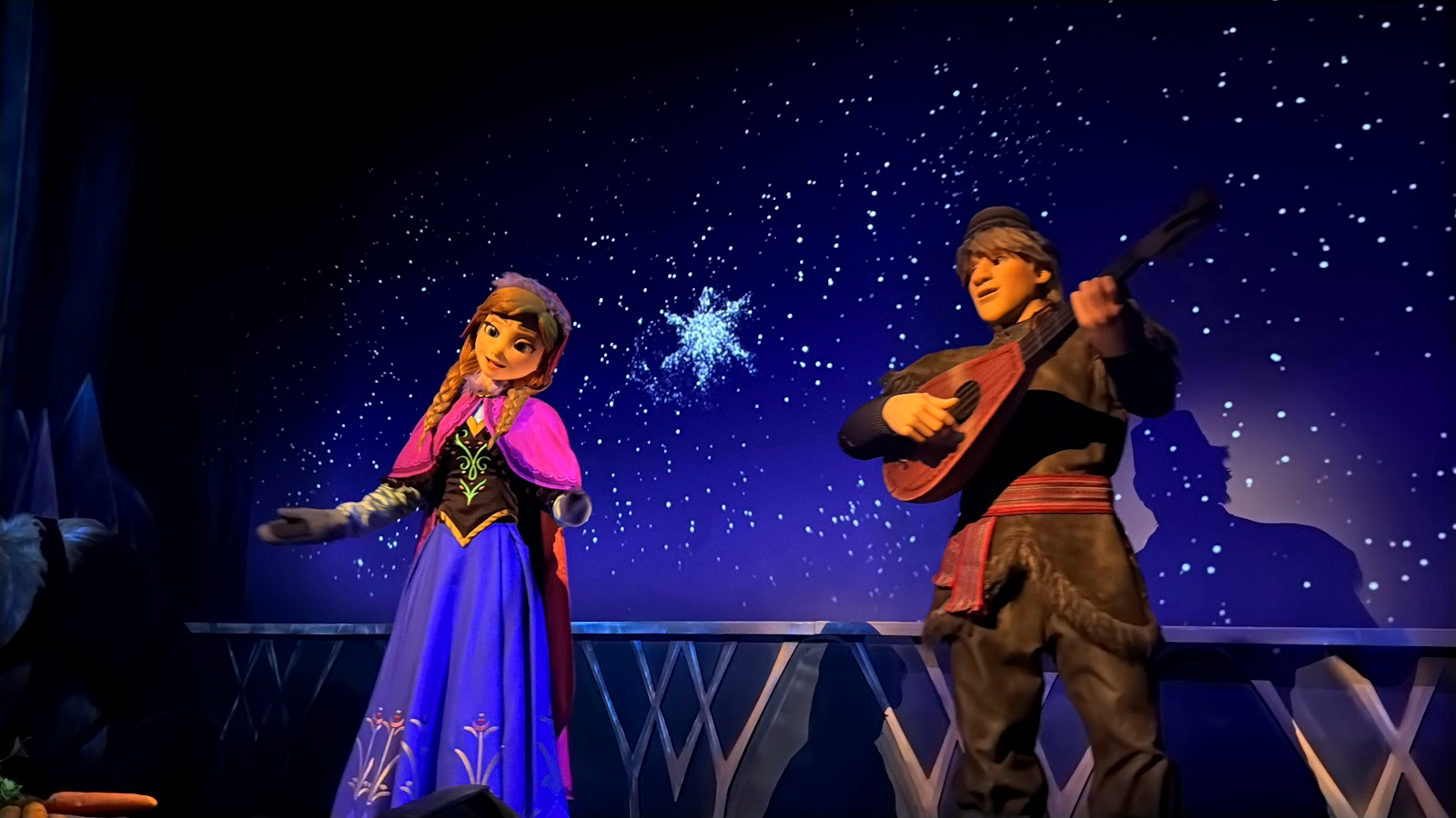 The faces of the human characters have been switched out to the fully sculpted and animated faces on the similar Frozen-based attractions in Hong Kong, and soon to open in Paris. Yes, Tokyo DisneySea also has a Frozen-themed boat ride, but it is unique to that park and not like those at EPCOT, Hong Kong Disneyland, and soon to be at Disney Adventure World, though it too has fully sculpted figures.