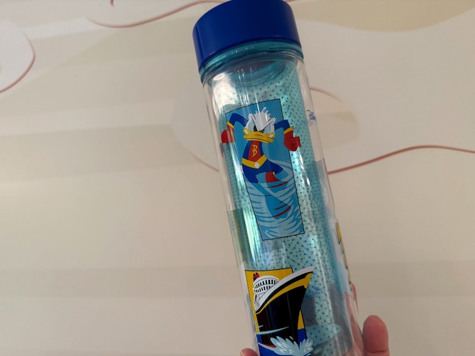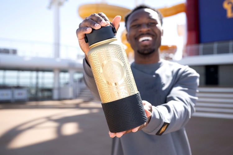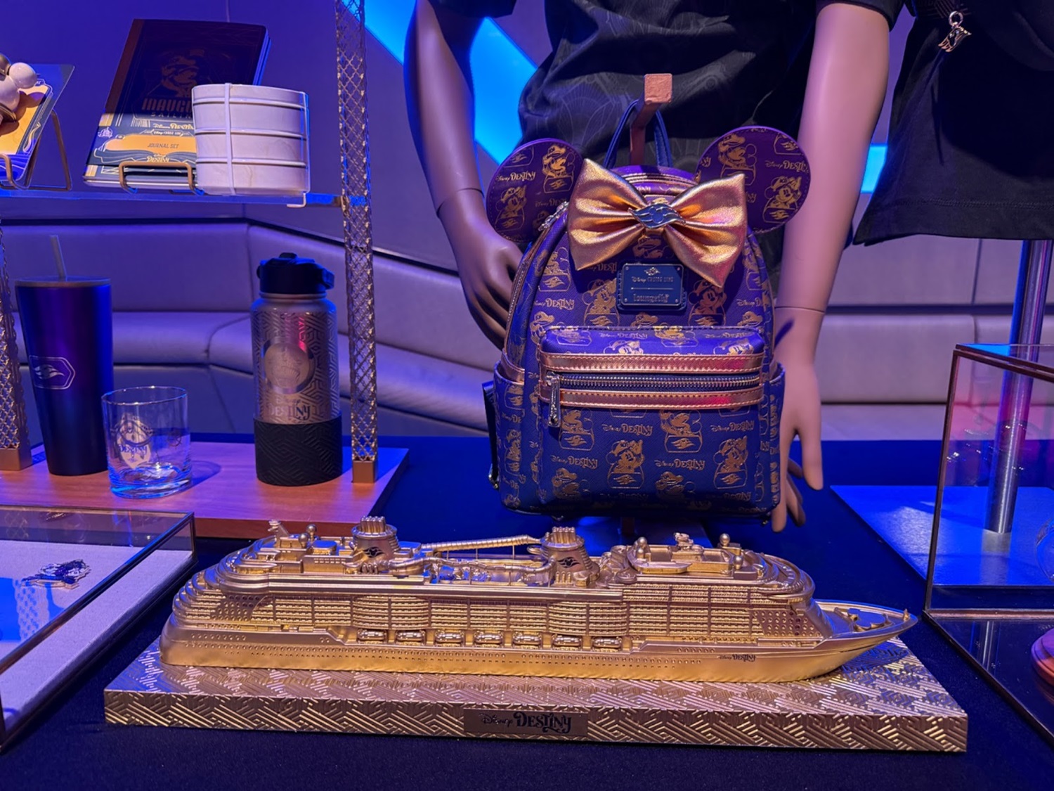 - The ship’s Inaugural Collection items, available for those guests sailing during the ship’s debut season, lean into deep blue, rich purple and gleaming gold hues to reflect the Grand Hall. This assortment includes clothing, water bottles, a Loungefly bag and jewelry, including from Pandora.