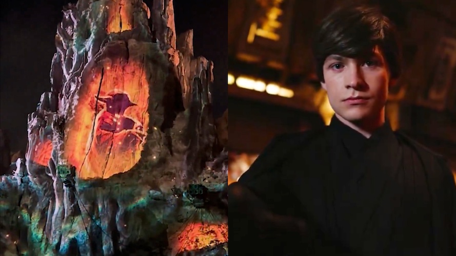 - First up, we got our first look at the new nighttime projection show that will grace the spires of Stars Wars: Galaxy’s Edge.
