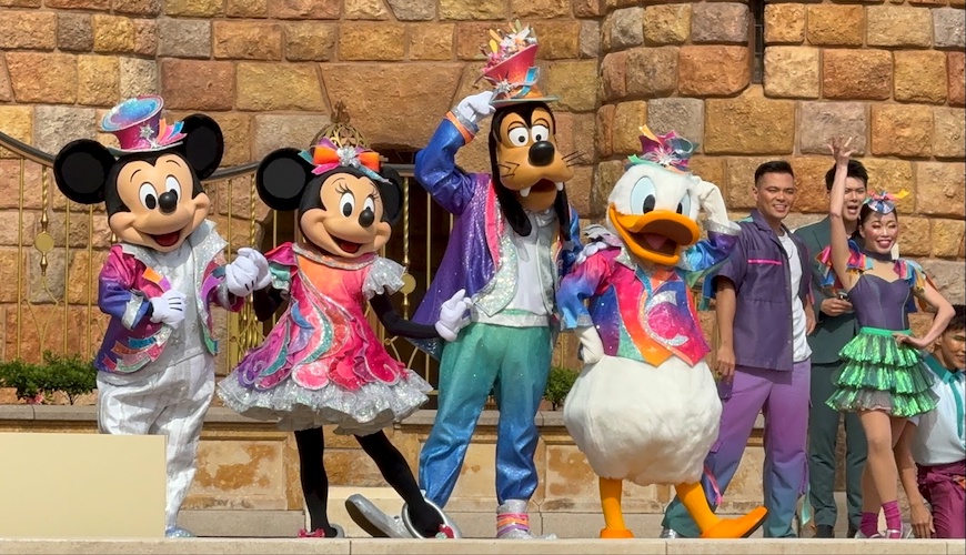 - "Disney Friends Live: Party at the Castle!" – an electrifying 15-minute concert-style show in front of the Castle of Magical Dreams, featuring high-energy pop music, dazzling dance moves, and interactive moments
