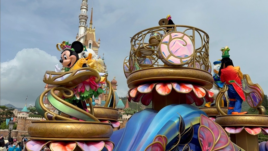 - We also saw the opening float featuring Mickey, Minnie and friends, which features live drumming from Mickey and Hong Kong’s signature bauhinia flower decorations.