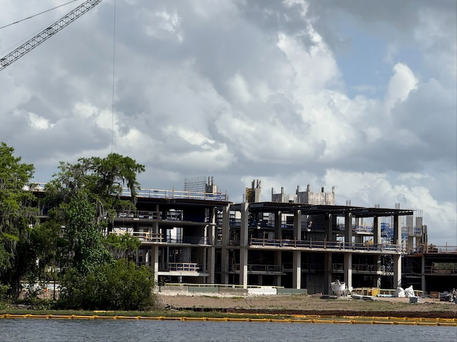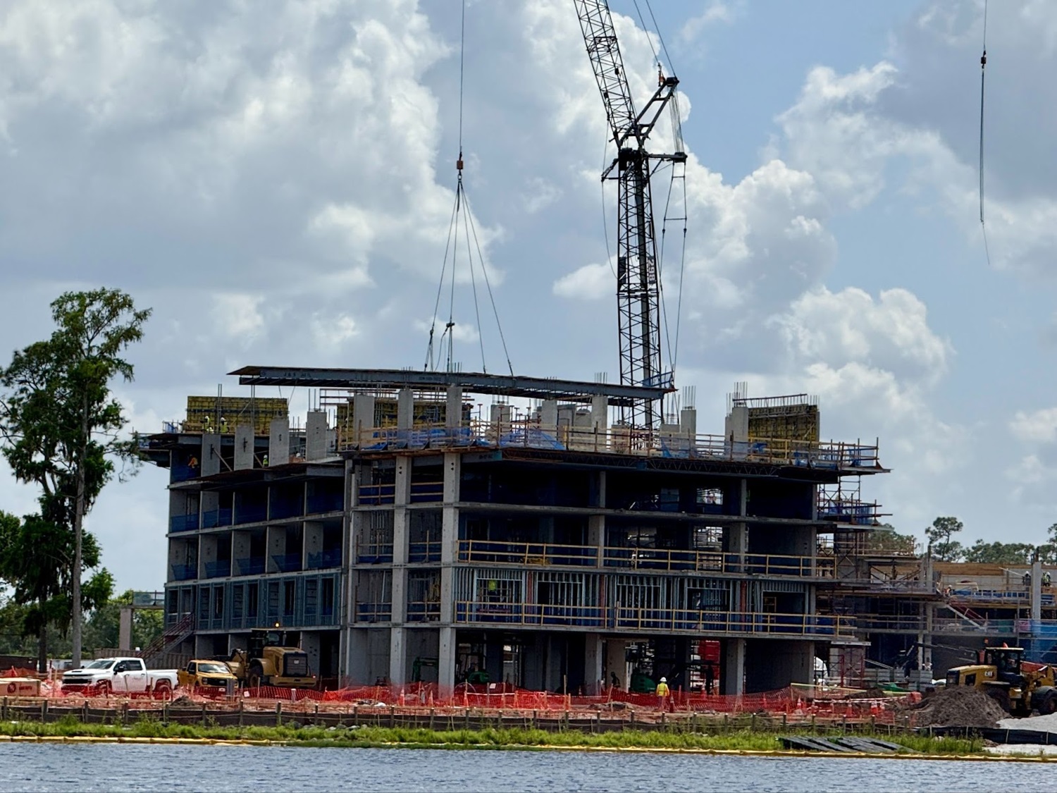 Disney’s Lakeshore Lodge continues to take shape along Bay Lake at the Walt Disney World Resort.