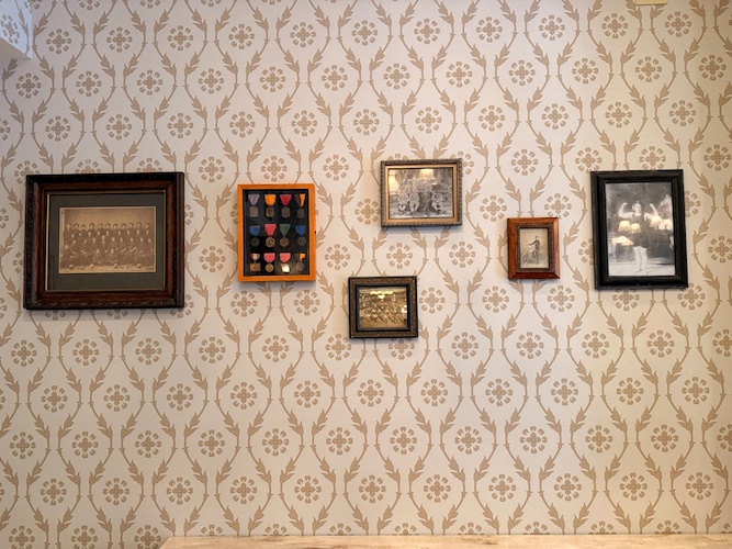 - Matching the theme of the external facade, vintage sports memorabilia decorates the wall behind the registers.