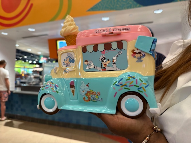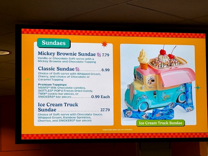 In addition to some new treats, guests can also get their hands on a Mickey Ice Cream Truck novelty item, which was previously available at the Disneyland Resort. The Ice Cream Truck Sundae comes with choice of soft-serve with chocolate sauce, whipped cream, rainbow sprinkles, cherries, and SNICKERS bar pieces served in Mickey’s Ice Cream Truck.