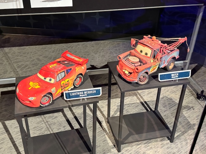 Like with Mike and Sulley, maquettes of besties Lightning McQueen and Mater are also on display.