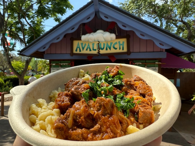 While visiting the park we also checked out some of the food offerings available to guests. Over at Warming Hut, he enjoyed a Cajun Deviled Egg and Shrimp Salad. We also tried the Hungarian Goulash at Avalunch, which was a beef stew with onion and tomato demi glaze served over spaetzle.