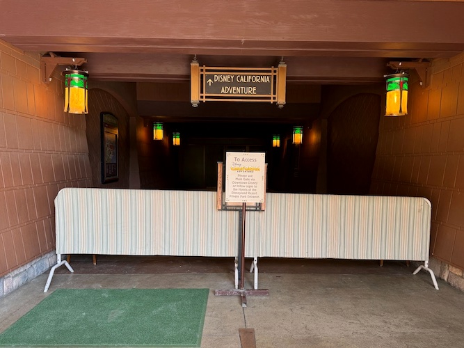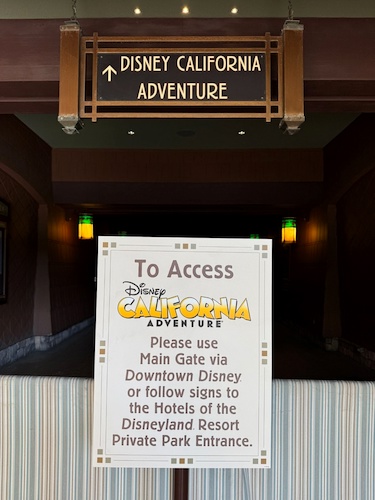 - Closing on March 10th, the dedicated Disney California Adventure entrance for the deluxe hotel is now completely blocked off, with signs instructing hotel guests to use the park’s main entrance.
