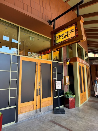 - The park’s Storytellers Cafe character dining location is also currently undergoing a refurbishment. The lower windows at the entrance are currently blacked out, with guests being redirected to the Trillium Room as a temporary location for the dining experience.