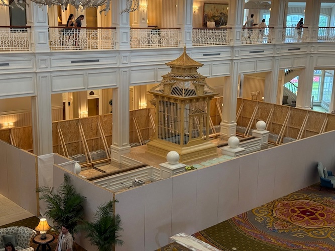 Just a few days after renovations were announced for the lobby of Disney’s Grand Floridian Resort and Spa at Walt Disney World, the process has begun, with construction walls now up.