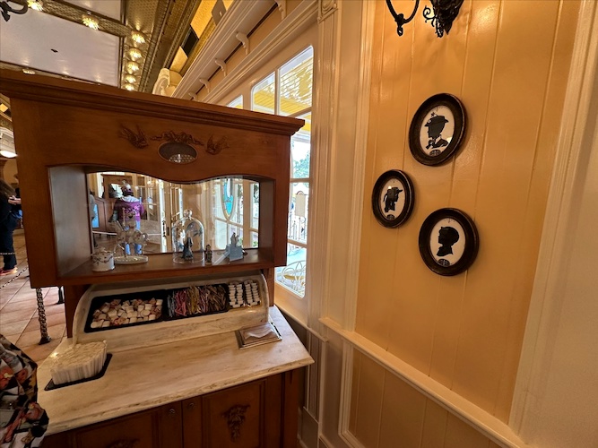 Of course, while waiting, guests can check out some of the special Mary Poppins details that line the location, including these framed silhouettes that line the wall.