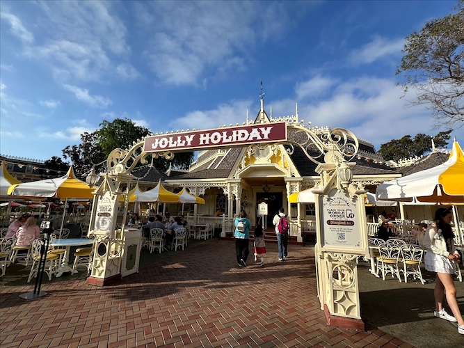 The Jolly Holiday Cafe at Disneyland has reopened after a refurbishment, allowing guests to once again enjoy the delicious treats and whimsical Mary Poppins details throughout. The sign is one of the bigs changes, removing the individual bulbs for a flat, light-up sign.