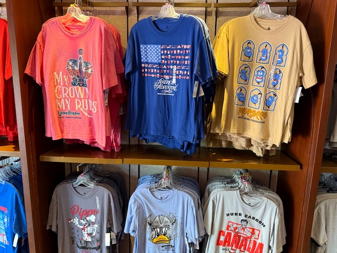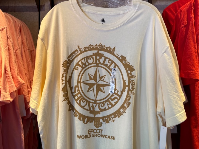 And lastly, there is an overall shirt for World Showcase, with a circular design that includes imagery all around it evoking all the different areas.