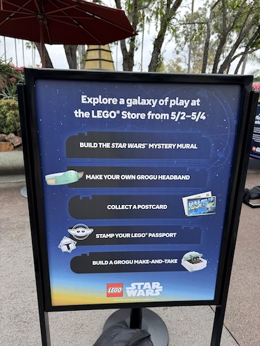 Along with the Grogu Make & Take fun, guests can also get their hands on a LEGO passport, fun headband, and special May the Fourth Be With You postcards.