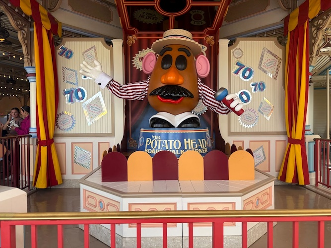 - On board the attraction, every single one of the games has been updated to feature similar decorations as the one by Mr. Potato Head. Some 100 point targets have even been updated to be 700 points with “70" logo stickers blocking the “10."