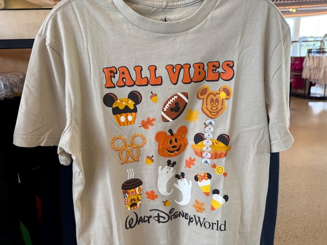 The “Fall Vibes" shirt (again, funny to see this out before we’ve hit the 4th of July) is centered on Halloween treats and vibes…. Well, mainly. The football not so much. Along with, say, the pretzel.